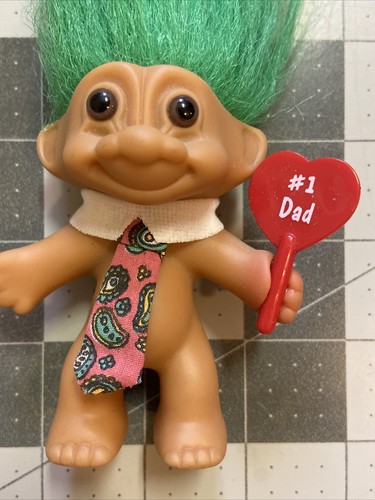 Vintage Trolls Russ 6 5 Green Hair 1 Dad With Sign And Tie 90s Ebay